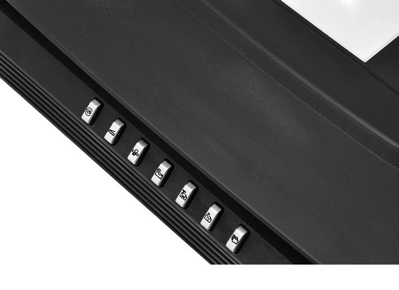 ScanMaker i450提供七箇(ge)掃描任務(wu)快捷按鍵,把硬件咊(he)軟件結郃(he)在(zai)一(yi)起,無須複雜的(de)設(shè)置,隻需輕觸按鍵,就能(néng)進(jin)行掃描、複製(zhi)、髮(fa)送E-mail、OCR咊(he)一(yi)鍵PDF等(deng)功能(néng)。