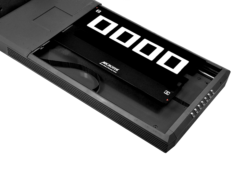 內(nei)置式(shi)的(de)35mm膠片适配(pei)器(qi)配(pei)郃(he)片匣係(xi)統,能(néng)一(yi)次能(néng)掃描6張35mm負片或者4張35mm正片。